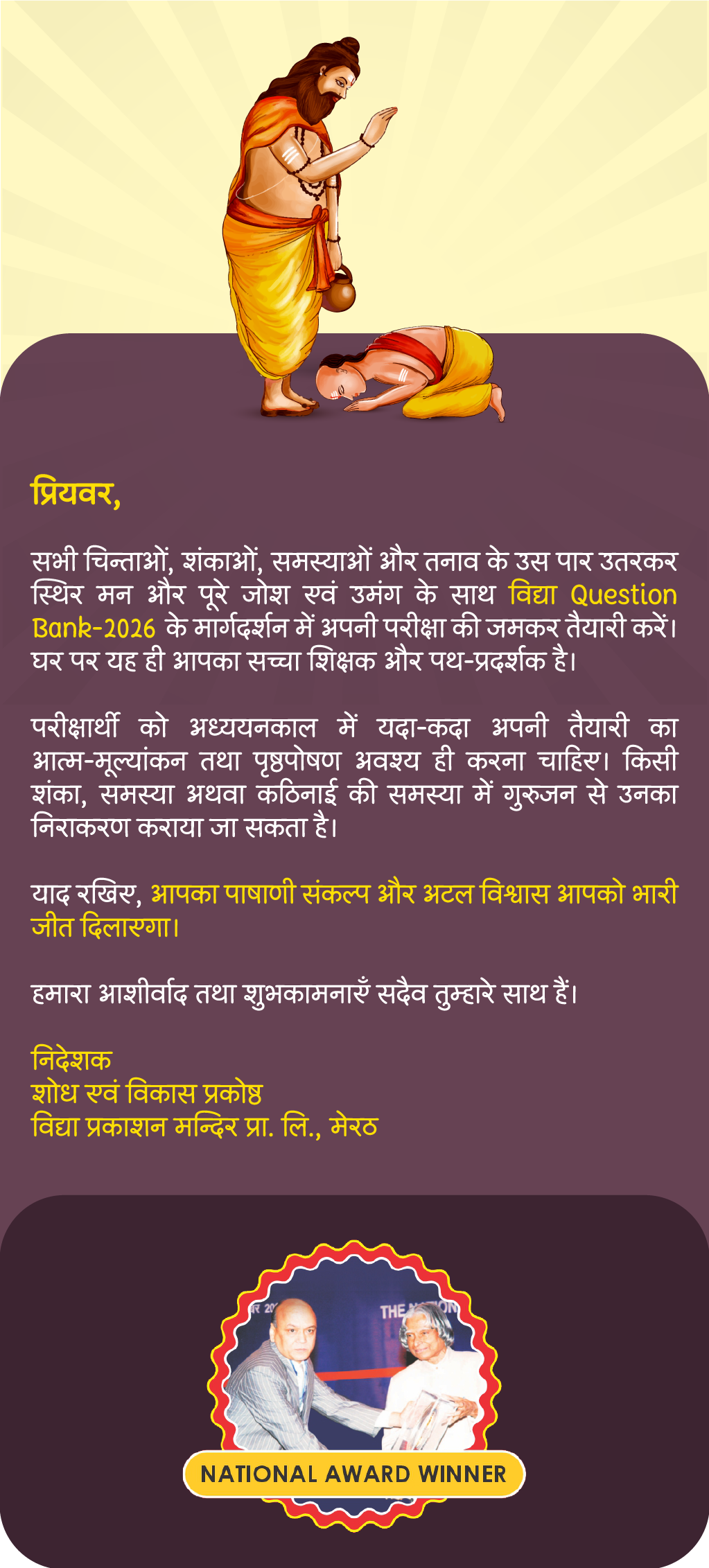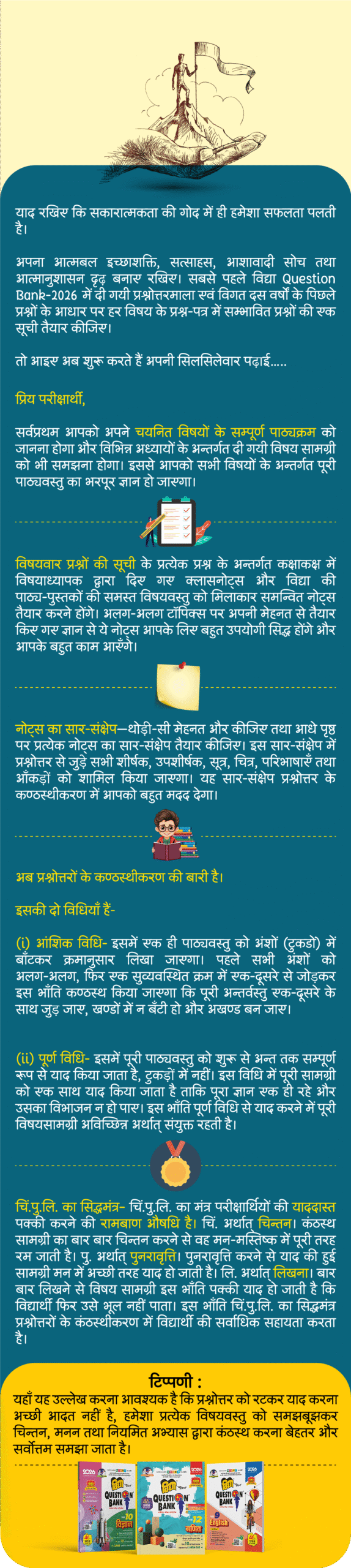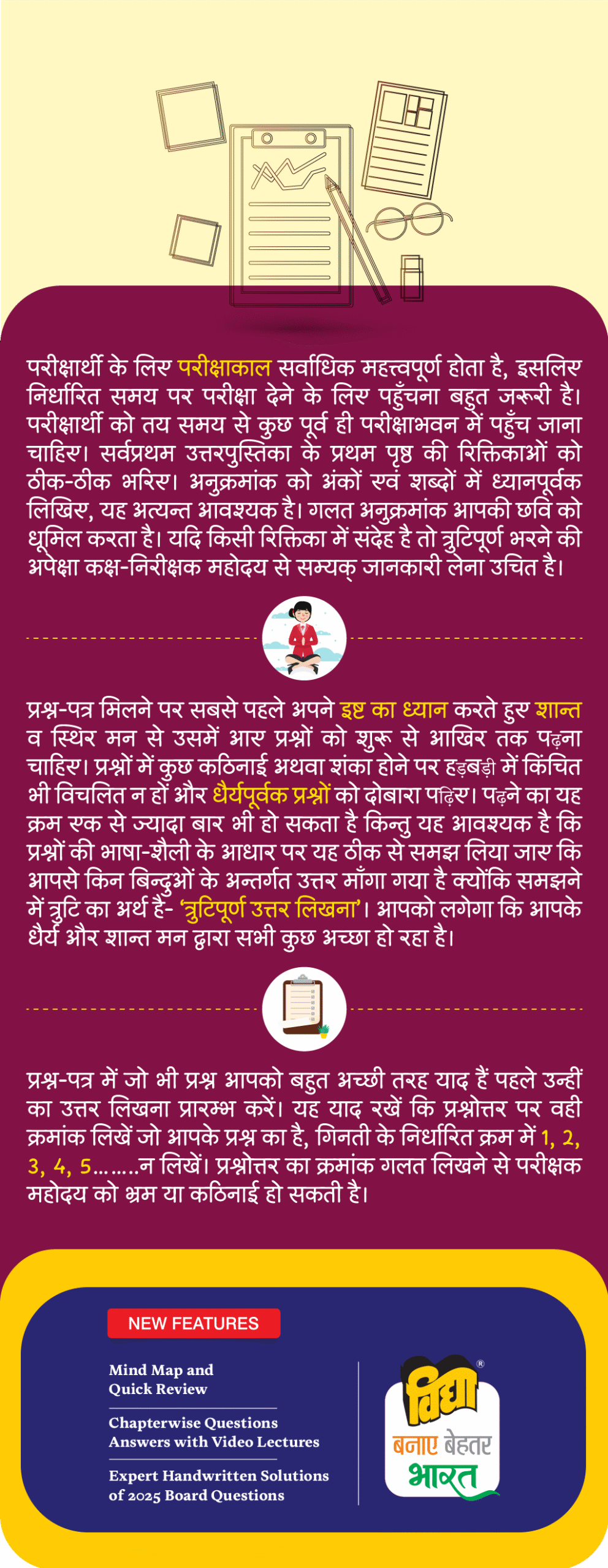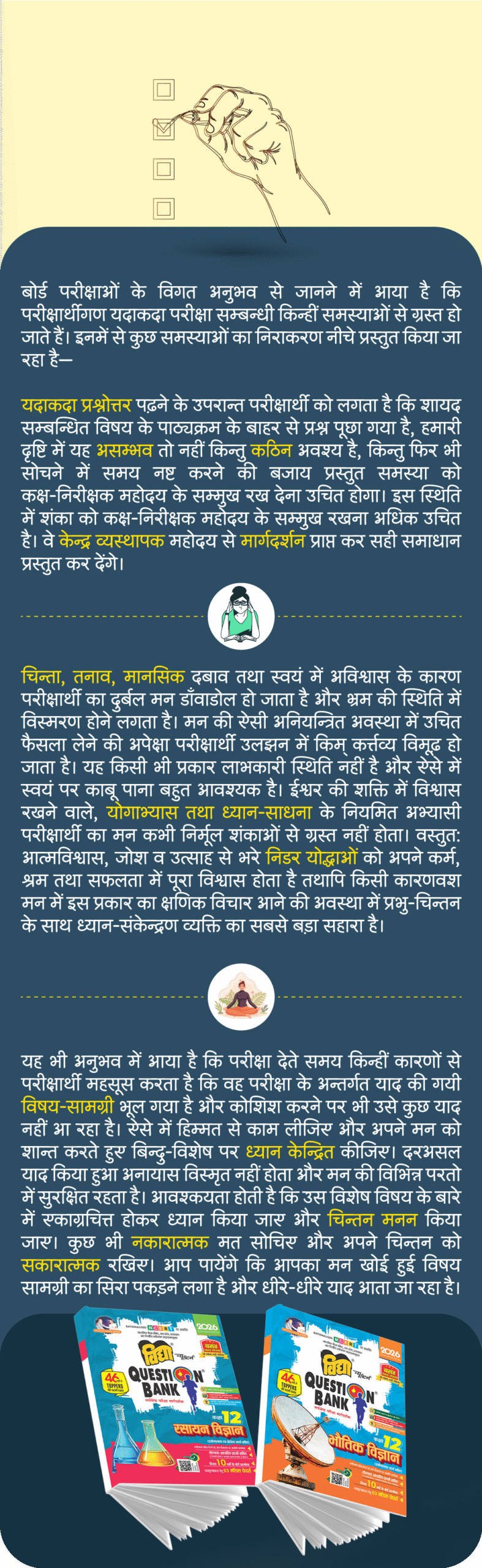Overview Syllabus Notification Expert Handwritten Solution Mock Papers Videos Super 30 Overview Syllabus Notifications Previous year Papers Course / Mock Papers Videos Overview Syllabus Notification Mock Papers Expert Handwritten Solution Videos Play & Win Quizes गणित जीव विज्ञान भौतिक विज्ञान रसायन विज्ञान अंग्रेजी सामान्य हिंदी साहित्यिक हिंदी MATHS | गणित BIOLOGY | जीव विज्ञान PHYSICS | भौतिक विज्ञान CHEMISTRY | रसायन विज्ञान ENGLISH | अंग्रेजी HINDI | सामान्य हिंदी HINDI | साहित्यिक हिंदी MATHS | गणित BIOLOGY | जीव विज्ञान PHYSICS | भौतिक विज्ञान CHEMISTRY | रसायन विज्ञान ENGLISH | अंग्रेजी HINDI | सामान्य हिंदी HINDI | साहित्यिक हिंदी MATHS BIOLOGY PHYSICS CHEMISTRY ENGLISH HINDI MATHS BIOLOGY PHYSICS CHEMISTRY ENGLISH HINDI परीक्षा में सफलता के मूलमंत्र 1. सफलता की सिद्धि तक पहुँचने के लिए पहली जड़ी-बूटी है ‘नकारात्मकता से मुक्ति’। 2. अध्ययन की सुचारु व्यवस्था 3. परीक्षा की काल रात्रि या अमृतकाल 4. प्रश्न-पत्र से सामना 5. प्रश्नोत्तर का प्रभावशाली प्रस्तुतीकरण 6. परीक्षा विषयक कतिपय मूल समस्याएँ 7. प्रिय परीक्षार्थी! आखिरी जीत तुम्हारी है